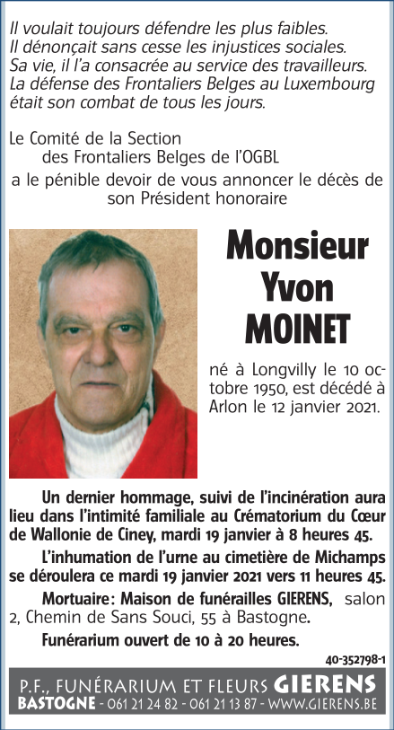 Décédé à Arlon (6700) le mardi 12 janvier 2021 à l'âge de 70 ans