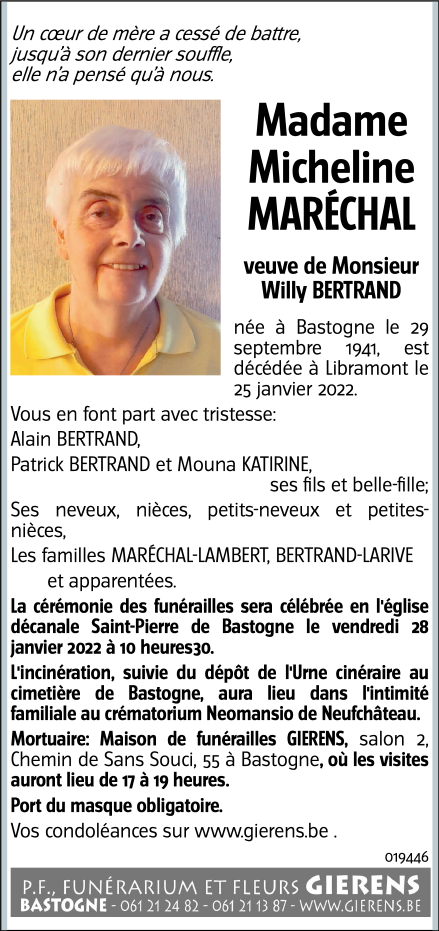 Décédée à Libramont-Chevigny (6800) le mardi 25 janvier 2022 à l'âge de 80 ans
