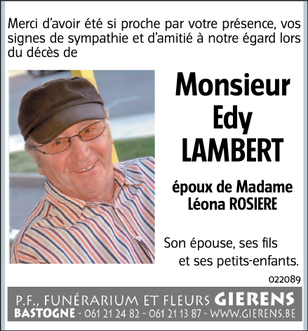 Décédé à Bastogne (6600) le mardi 15 février 2022 à l'âge de 77 ans