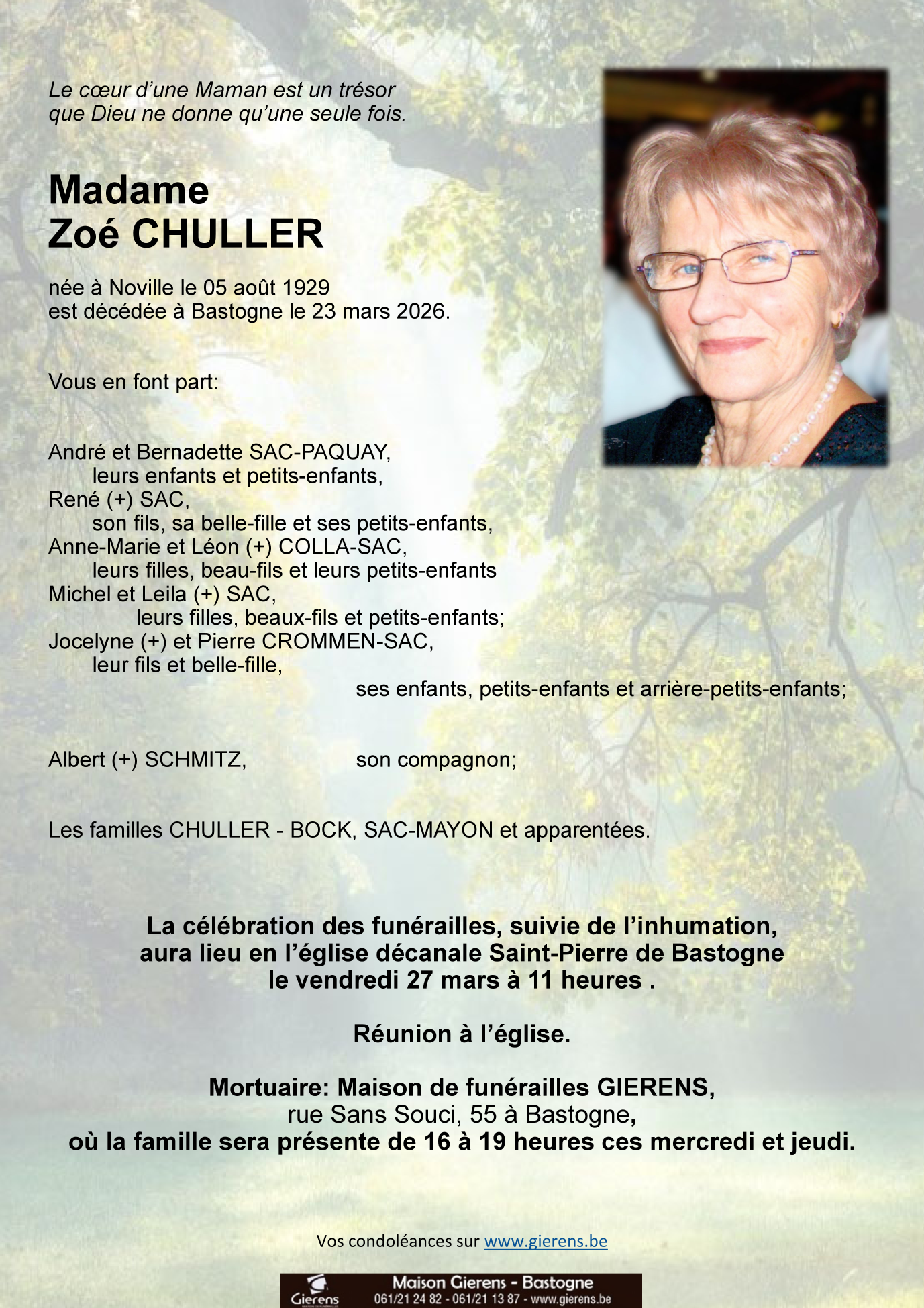 Décédée à Bastogne (6600) le lundi 23 mars 2026 à l'âge de 96 ans