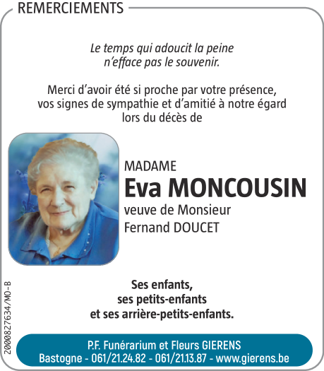 Décédée à Bastogne (6600) le dimanche 2 mai 2021 à l'âge de 89 ans