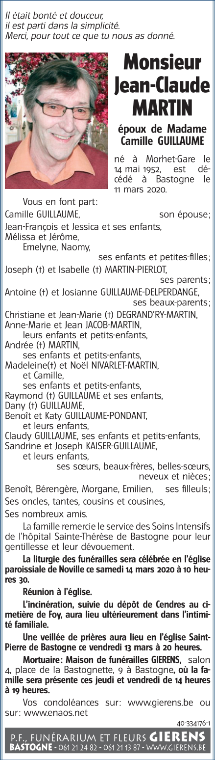 Décédé à Bastogne (6600) le mercredi 11 mars 2020 à l'âge de 67 ans