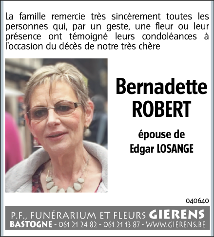 Décédée à Bastogne (6600) le mardi 20 décembre 2022 à l'âge de 69 ans