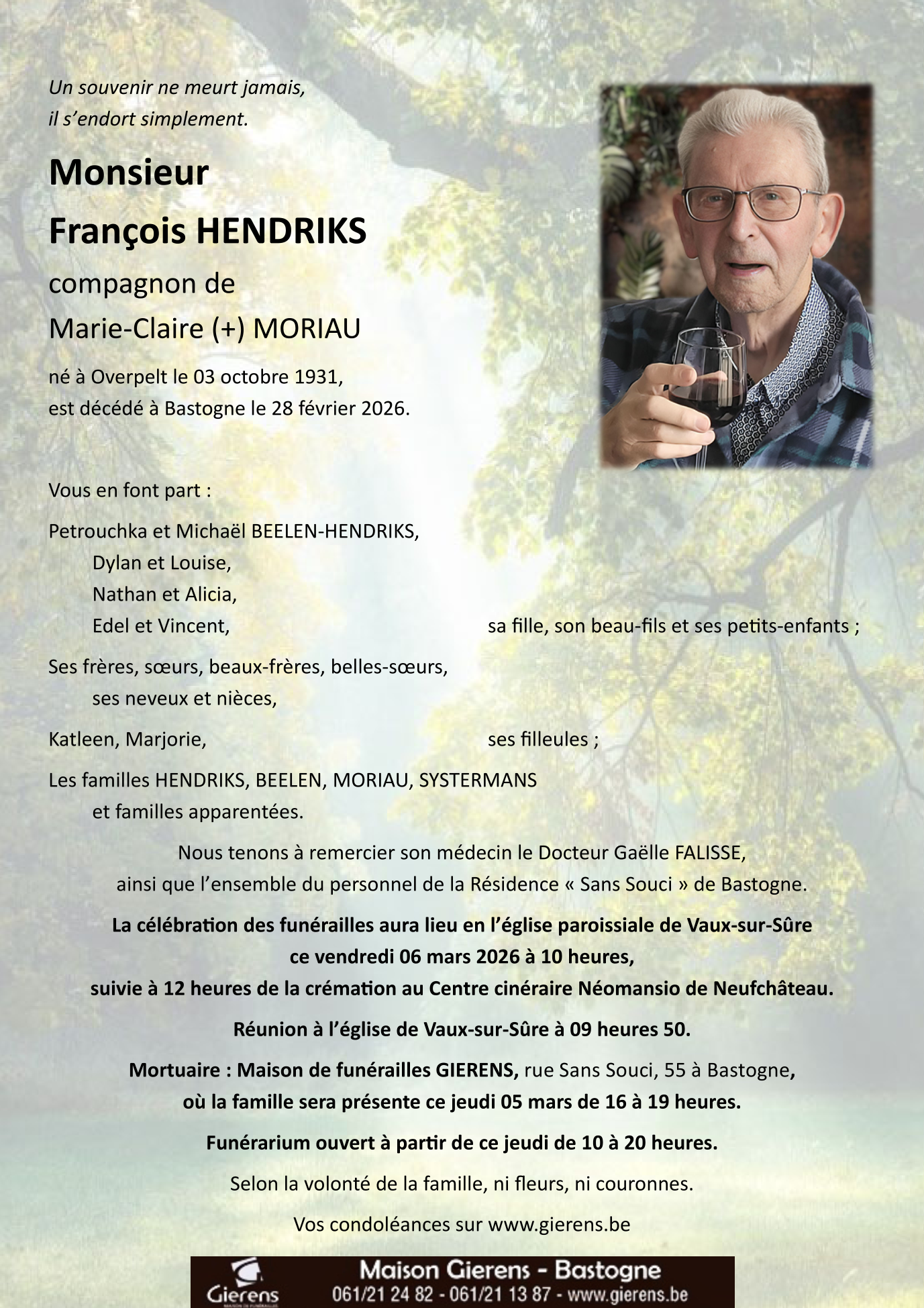 Décédé à Bastogne (6600) le samedi 28 février 2026 à l'âge de 94 ans