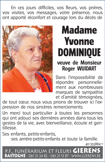 Veuve de Monsieur Roger WUIDART