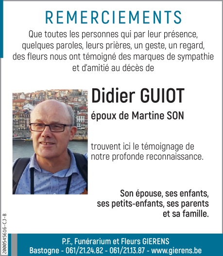 Décédé à Yvoir (5530) le jeudi 19 décembre 2019 à l'âge de 59 ans