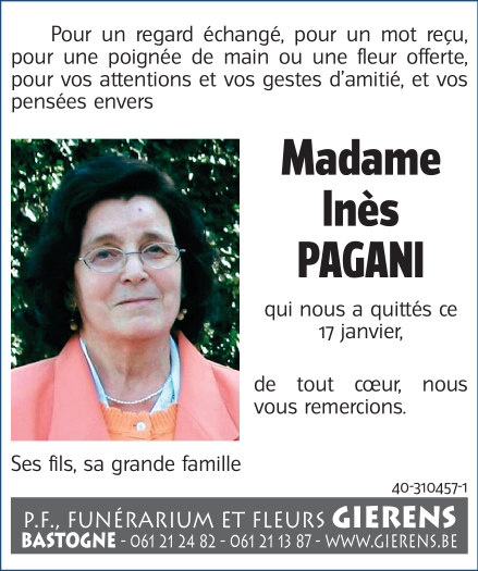Décédée à Baillonville (5377) le jeudi 17 janvier 2019 à l'âge de 87 ans