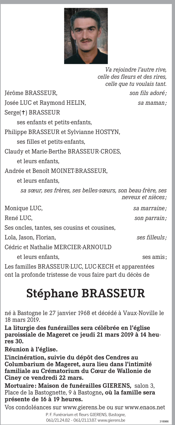 Décédé à Bastogne (6600) le lundi 18 mars 2019 à l'âge de 51 ans