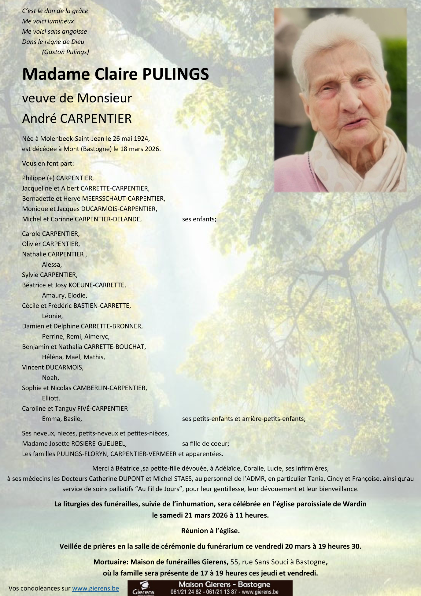 Veuve de Monsieur André CARPENTIER