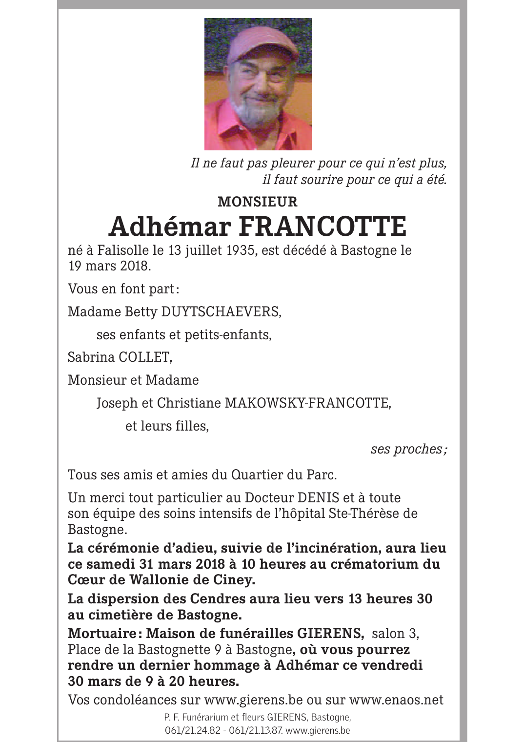 Monsieur Adhémar FRANCOTTE