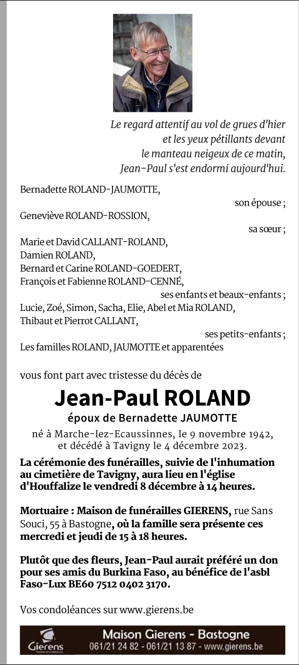 Décédé à Tavigny (6662) le lundi 4 décembre 2023 à l'âge de 81 ans