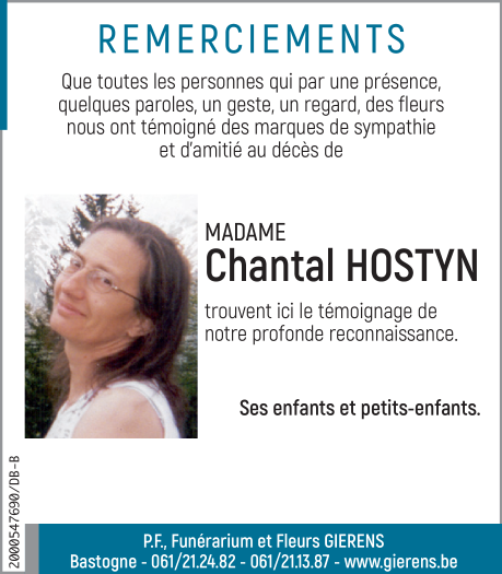 Décédée à Bastogne (6600) le mercredi 11 décembre 2019 à l'âge de 65 ans