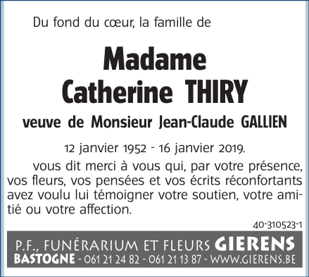 Veuve de Monsieur Jean-Claude GALLIEN
