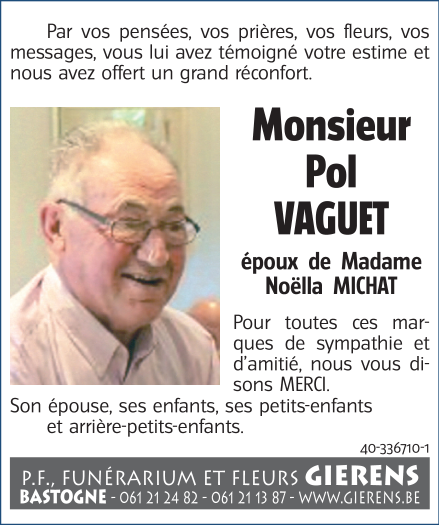 Décédé à Bastogne (6600) le dimanche 29 mars 2020 à l'âge de 80 ans