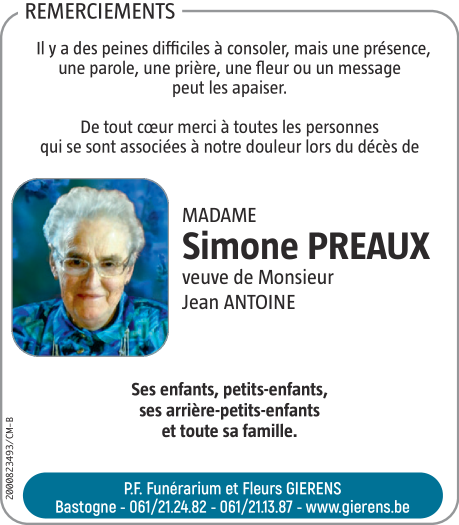 Décédée à Bastogne (6600) le mercredi 28 avril 2021 à l'âge de 89 ans